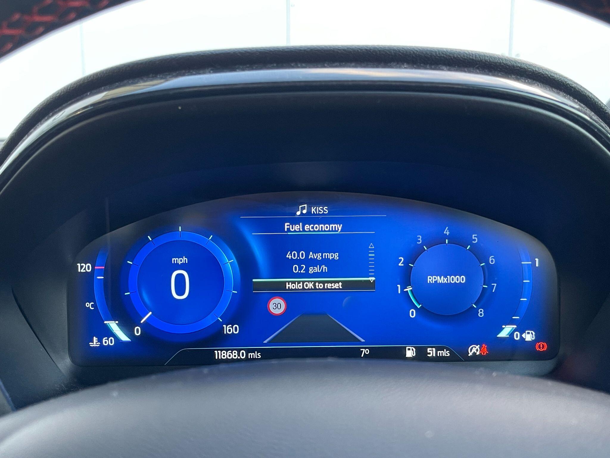 | Parking Pack | Winter Pack | Privacy Glass | 17in Alloy Wheels - 5x2 Spoke - Black Machined Finish | ABS - Anti-lock Braking System | Acoustic Laminated Windscreen | Active Grille Shutter | Automatic Dimming Rear View Mirror | Automatic Headlights with Rain-Sensing Wipers and Auto High Beam | Centre Console - Premium with Openable Stowage Area with USB Connectivity - 2 Cupholders and 12v Power Point | Courtesy Lights - Ambient LED Courtesy Lighting - Single Colour | Cruise Control - Lane Keeping Aid and Lane Departure Warning | Driver Assistance Pack - Design | Drivers Manual 4-Way Seat Adjustment with Manual Lumbar Adjust | ESC - Electronic Stability Control and Hill Start Assist | Ecoboost Hybrid Tailgate Badge | Electric Windows - Front and Rear | Emergency Brake Warning - Automatic Hazard Warning Lights | First Aid Kit Strap | Floor Mats - Front and Rear | Ford MegaBox Extended Bootspace | Ford Power Starter Button | Ford SYNC 3 Navigation | Front Bumper - Unique ST-Line Sport Design - Body Colour | Front Fog Lights with Cornering lights and LED Rear Lamps | Full Digital 12.3in Instrument Cluster | Gear Knob - Aluminium | Handbrake - Black Sensico Trimmed with Stitching | Headliner - Deluxe | Instrument Panel - High Level | Intelligent Speed Assistance | Large Rear Spoiler - Body Colour with Centre High Mounted Stop Light | Locking Wheel Nuts | Lower Bodyside Moulding - Body Colour | Manual Air Conditioning | Passengers Seat - 2-Way | Post Collision Braking | Power Steering | Power-Foldable Heated Door Mirrors with Puddle Lamps | Pre-Collision Assist with Autonomous Emergency Braking and Pedestrian-Cyclist Detection | Projector Headlamps with LED Daytime Running Lights | Puma Badge | Quickclear Heated Windscreen | Rear Bumper Body Colour - Diffuser | Rear Parking Sensors | Rear Seats - 2-Way Head Restraint Up-Down | Rear Seats - Second Row 60-40 Folding Seats | Remote Central-Double Locking | Restrain Device Pack | ST-Line Badge | ST-Line Body Styling Kit | ST-Line Flat-Bottomed Leather Steering Wheel with Unique Red Stitching | Selectable Driving Modes - Normal - Eco - Sport - Slippery and Trail | Soft-feel Gearshift Boot with Red Stitching | Speed Limiter | Sports Suspension | Tailgate - Manual | Thatcham Alarm | Traction Control and Emergency Braking Assistance | Trip-Fuel Computer | Tyre Pressure Monitoring System - TPMS |